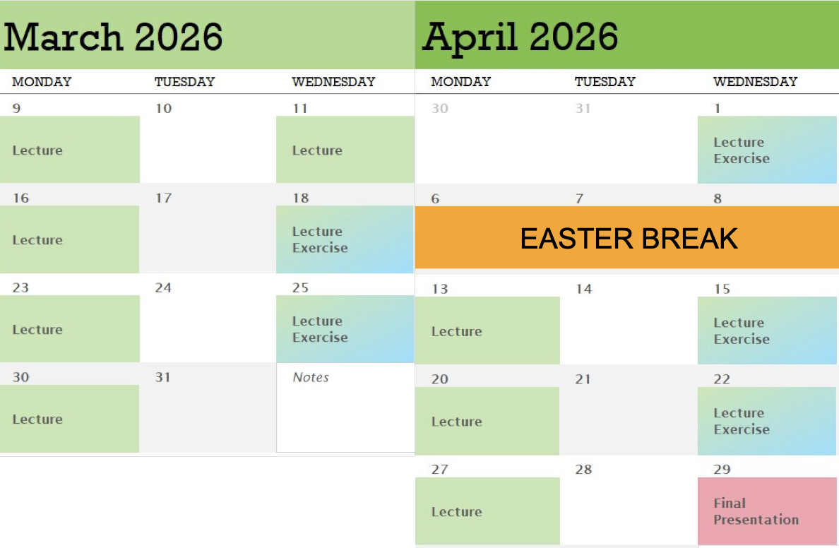 - The presentation date is 29.4.2026: attendance is mandatory for passing the course